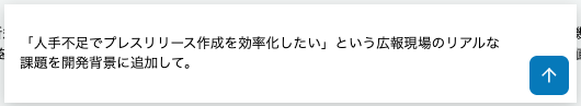 生成されたリリースにフィードバックを加えて、文章を再生成することができます。このボタンを押すと、フィードバックコメントを入力するテキストボックスが表示されますので、指示を入力してください。